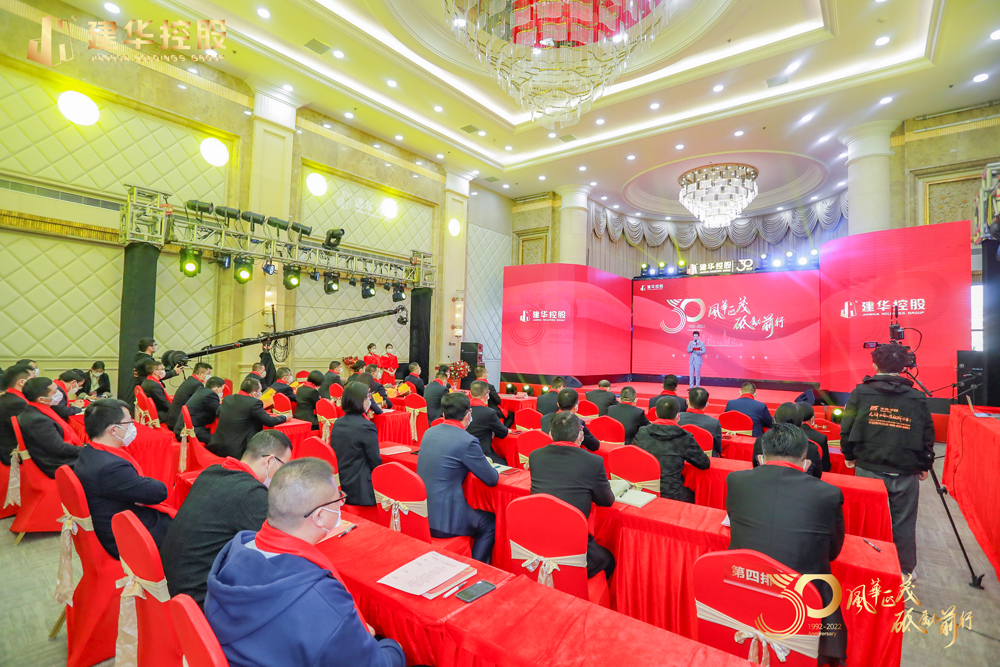 2022年12月26日,由豐色·中國(廣州活動策劃公司)策劃設計和統籌執行的“風華正茂 砥礪前行”建華成立三十年慶典以現場活動和線上直播的方式隆重舉行。建華創始人、建華控股集團董事長許景新,集團董事會成員、中高層管理幹部代表、入職建華30年、25年以上員工等分別在中山小欖會場、江蘇鎮江會場出席了慶典,建華控股集團分布在全國23個省市、自治區的200餘家子公司、生產基地的全體建華員工及一直支持關心建華發展的社會各界朋友通過線上直播觀看了此次慶典活動。