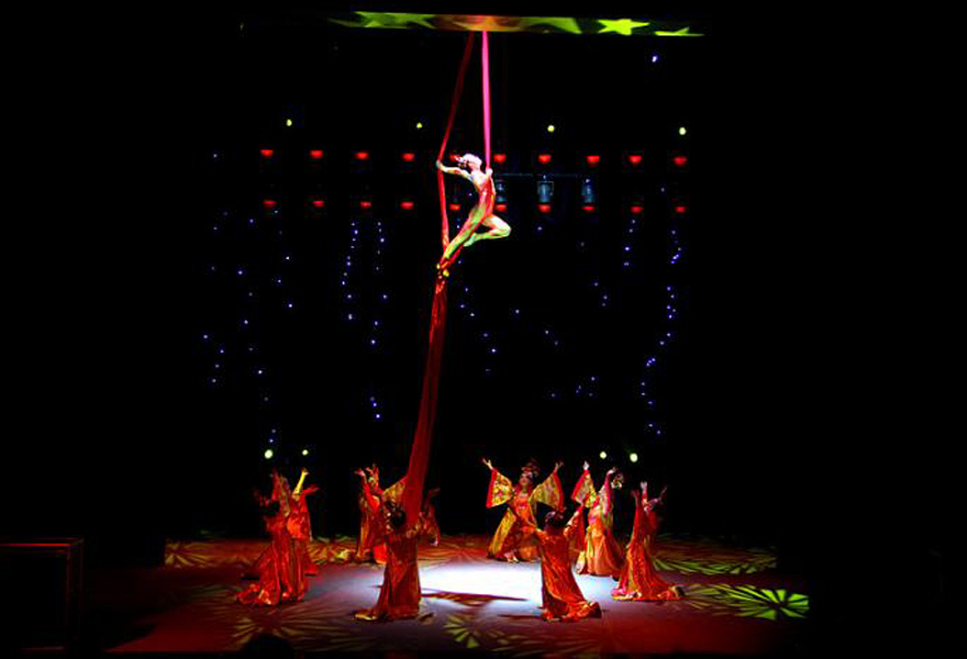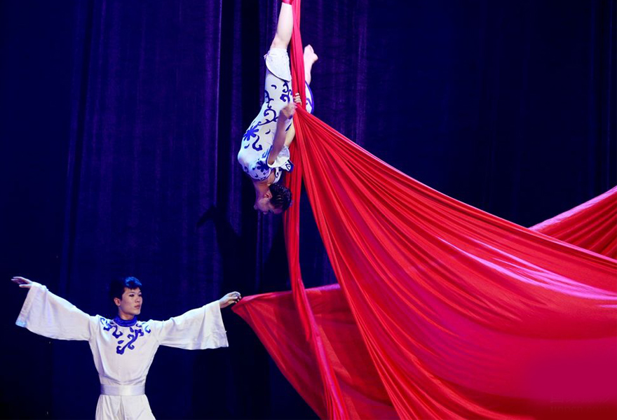 產品名稱: 《綢吊》是一項空中技巧節目,演員利用彩色綢子,旋轉、靜止、或高或低、或上或下在空中翩翩起舞,並表演出優美、驚險的高難度動作。 他的表演手法有單人、雙人、三(san)人(ren)和(he)多(duo)人(ren)的(de)組(zu)合(he)動(dong)作(zuo),充(chong)分(fen)體(ti)現(xian)演(yan)員(yuan)在(zai)空(kong)中(zhong)的(de)優(you)美(mei)姿(zi)態(tai)和(he)各(ge)種(zhong)巧(qiao)妙(miao)結(jie)合(he)的(de)技(ji)巧(qiao)展(zhan)現(xian),這(zhe)種(zhong)表(biao)演(yan)形(xing)式(shi)是(shi)舞(wu)蹈(dao)和(he)芭(ba)蕾(lei)等(deng)姐(jie)妹(mei)藝(yi)術(shu)無(wu)法(fa)表(biao)現(xian)的(de)。