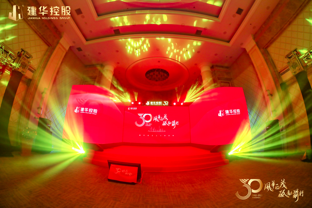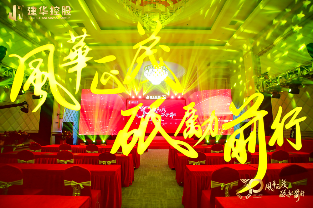 2022年12月26日,由豐色·中國(廣州活動策劃公司)策劃設計和統籌執行的“風華正茂 砥礪前行”建華成立三十年慶典以現場活動和線上直播的方式隆重舉行。建華創始人、建華控股集團董事長許景新,集團董事會成員、中高層管理幹部代表、入職建華30年、25年以上員工等分別在中山小欖會場、江蘇鎮江會場出席了慶典,建華控股集團分布在全國23個省市、自治區的200餘家子公司、生產基地的全體建華員工及一直支持關心建華發展的社會各界朋友通過線上直播觀看了此次慶典活動。