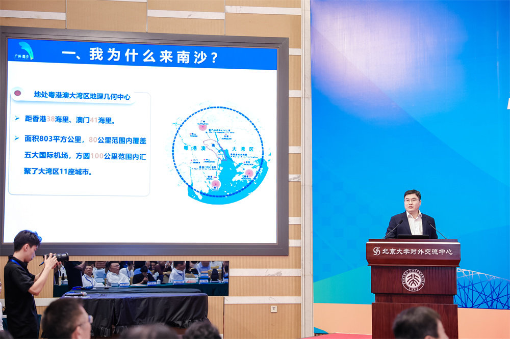 廣州市南沙區委常委、組織部部長張家炳介紹了南沙區的區位優勢、產業優勢、政策優勢、環境優勢,力邀北大學子選擇廣州、紮根南沙,投入到大灣區建設事業中。