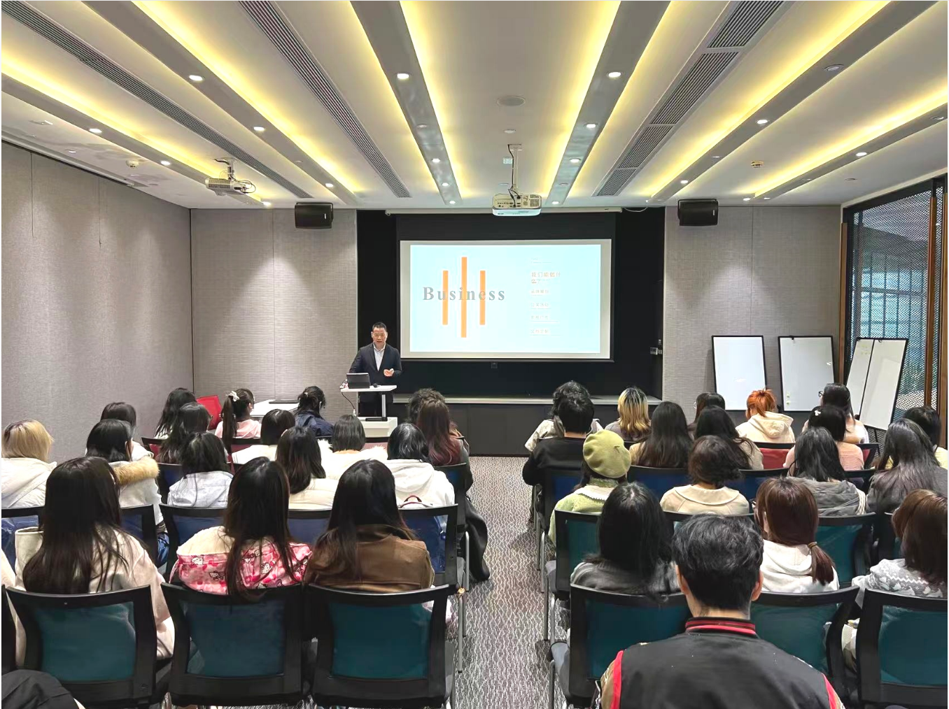 在“視覺設計要素”部分,陳子富指出,視覺不僅是美學表達,更是品牌戰略的視覺翻譯。他詳細解構了如何將品牌核心價值係統性地轉化為標誌、色彩、字體、影像等視覺資產,並保持跨媒介應用的一致性。針對迅猛發展的“視頻營銷”,他分享了內容創意、敘事節奏與平台特性結合的心得,強調短視頻與直播已成為品牌與消費者建立情感連接、驅動轉化不可或缺的陣地。